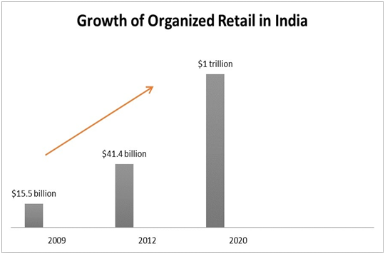 Currently India constitutes only 8% of organized retail and remaining 92% is left unorganized, which may grow much faster than traditional retail. It is expected to gain a higher share in the growing pie of the retail market in India. Various estimates put the share of organized retail as 20% by 2020.